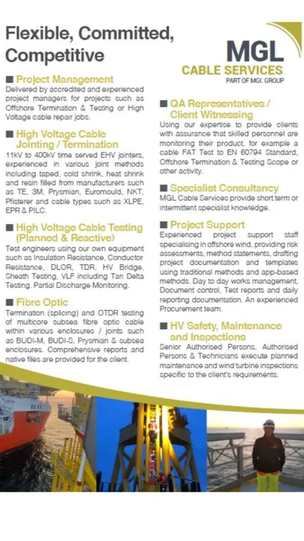 Specific expertise includes High Voltage Cable Jointing up to 400kV, High Voltage Cable Testing, Fibre Optic Cable Splicing, Fibre Optic Cable Testing, Offshore Termination & Testing, Project Management, Project Support, Technical Documentation Drafting, Client Witnessing, Civil Construction and Plant, High Voltage Cable Fitters and Specialist Engineering Consultancy.